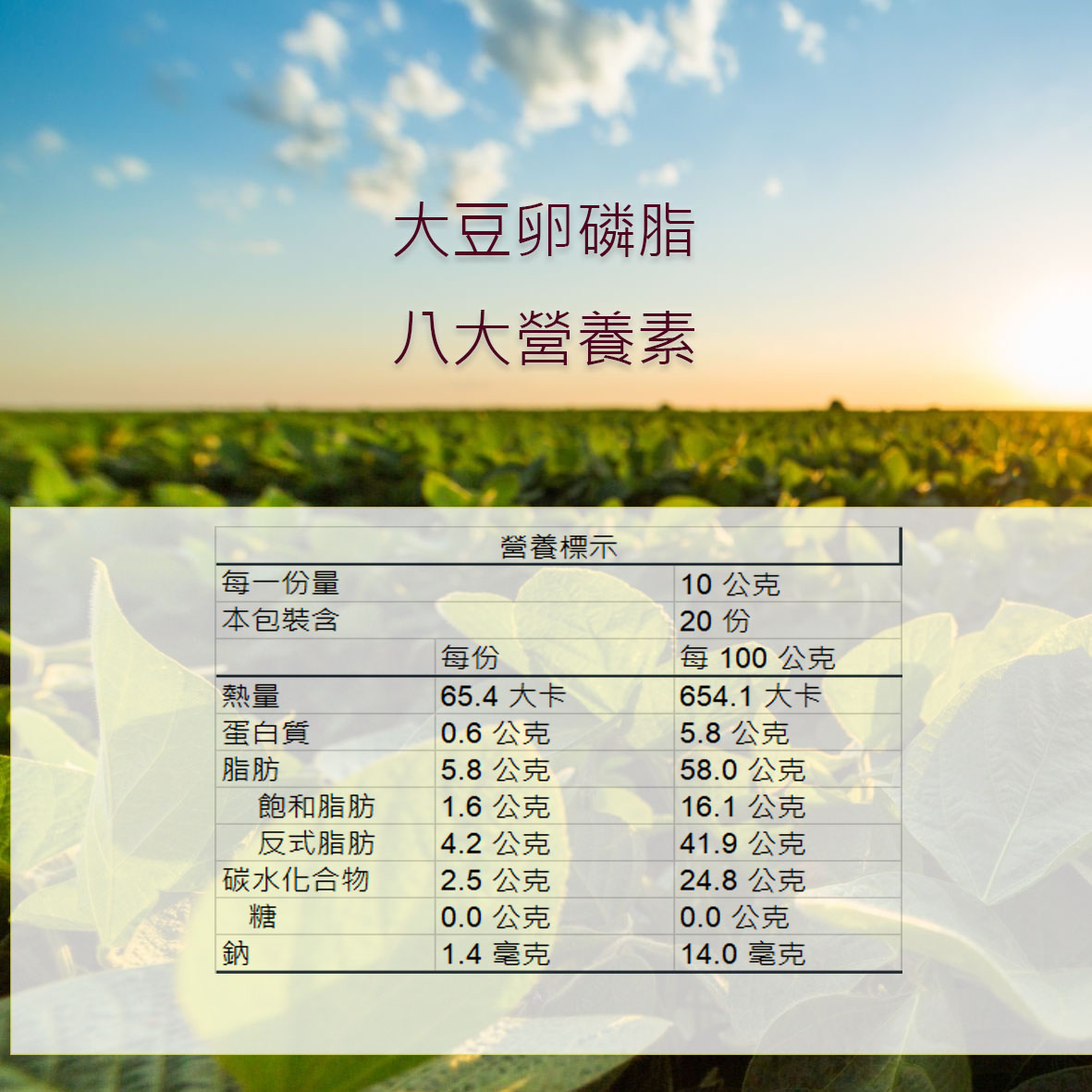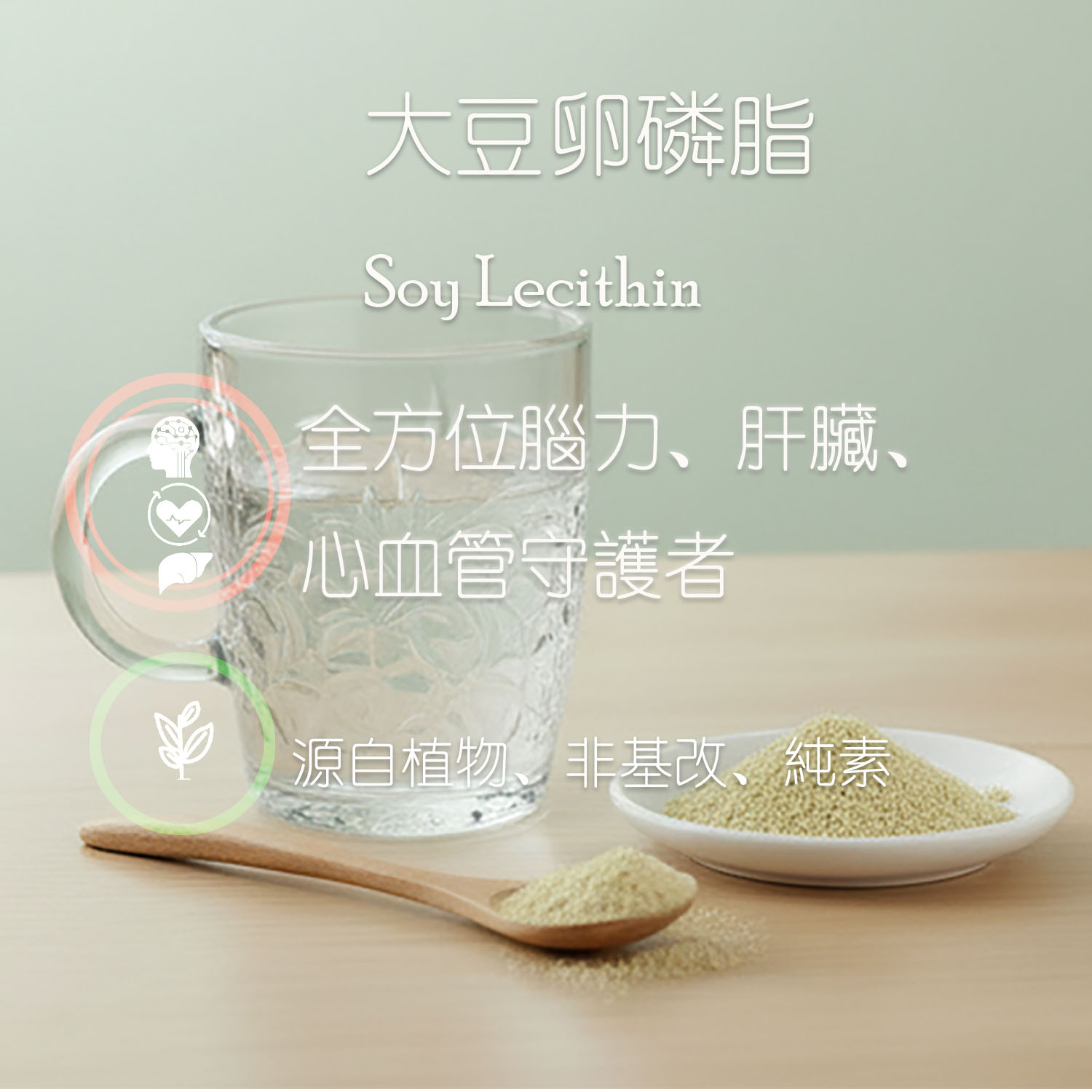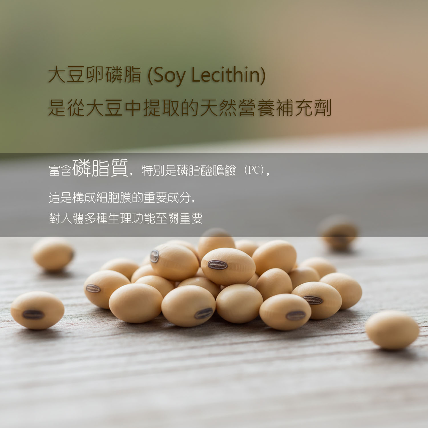 Lecithin) 是一種從大豆中提取的天然營養補充劑,富含磷脂質,特別是磷脂醯膽鹼