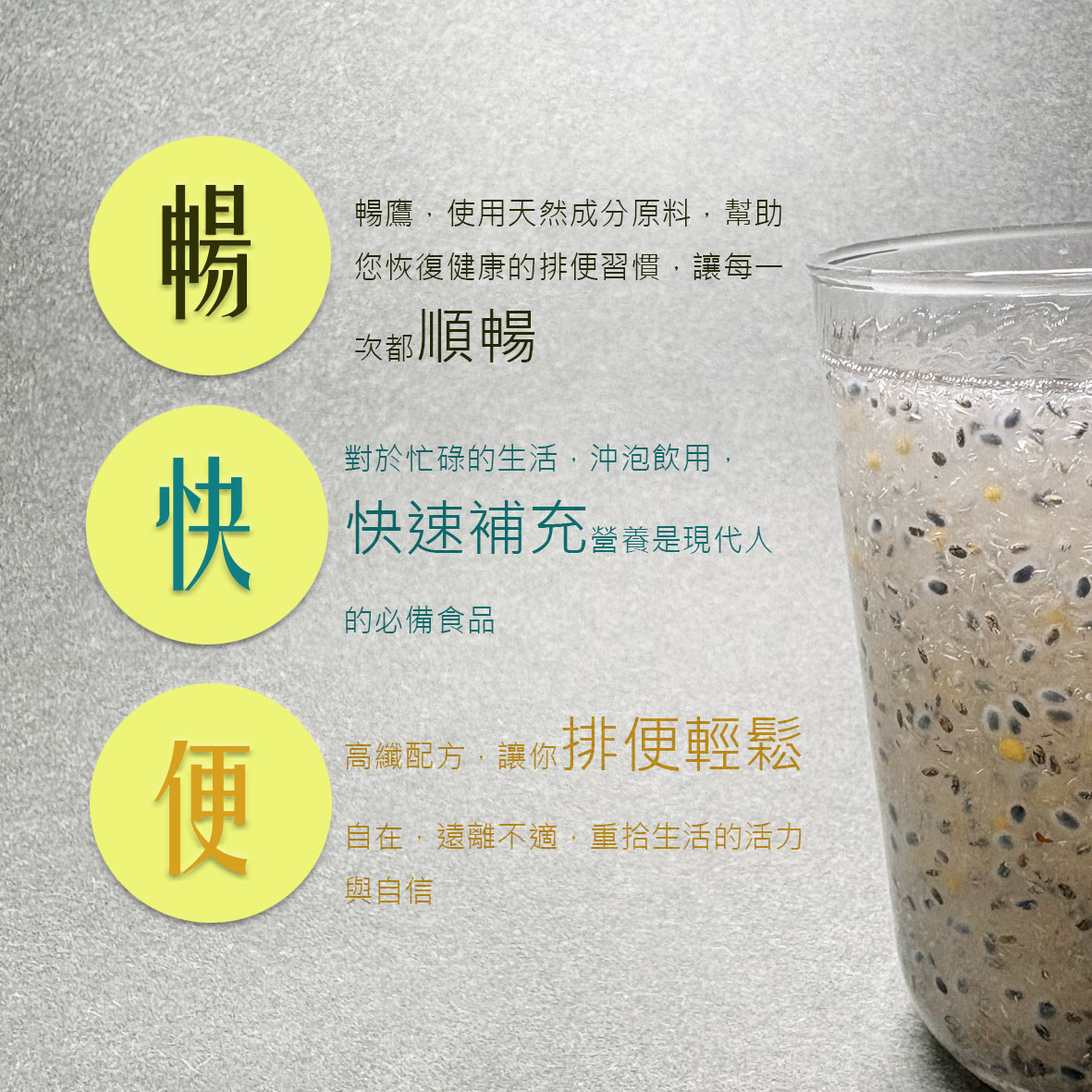 每天1-2杯,增加飽足感又嗯嗯順利,養成健康的高纖飲食,趕快動起來